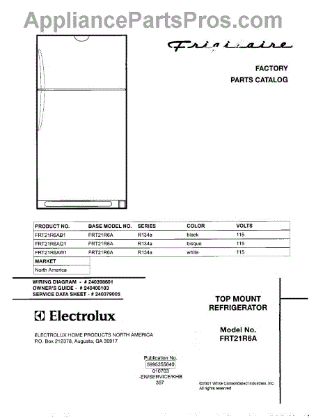 Parts for Frigidaire FRT21R6AB1: 01 - Cover Parts