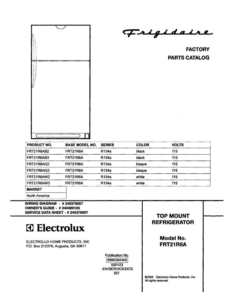Parts for Frigidaire FRT21R6AW3: 01 - Cover Parts