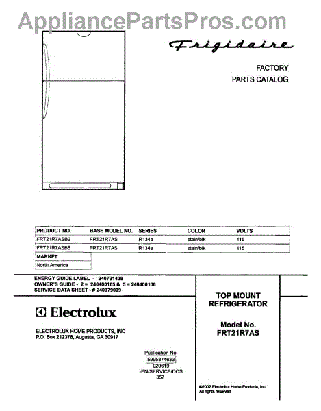 Parts for Frigidaire FRT21R7ASB2: 01 - Cover Parts