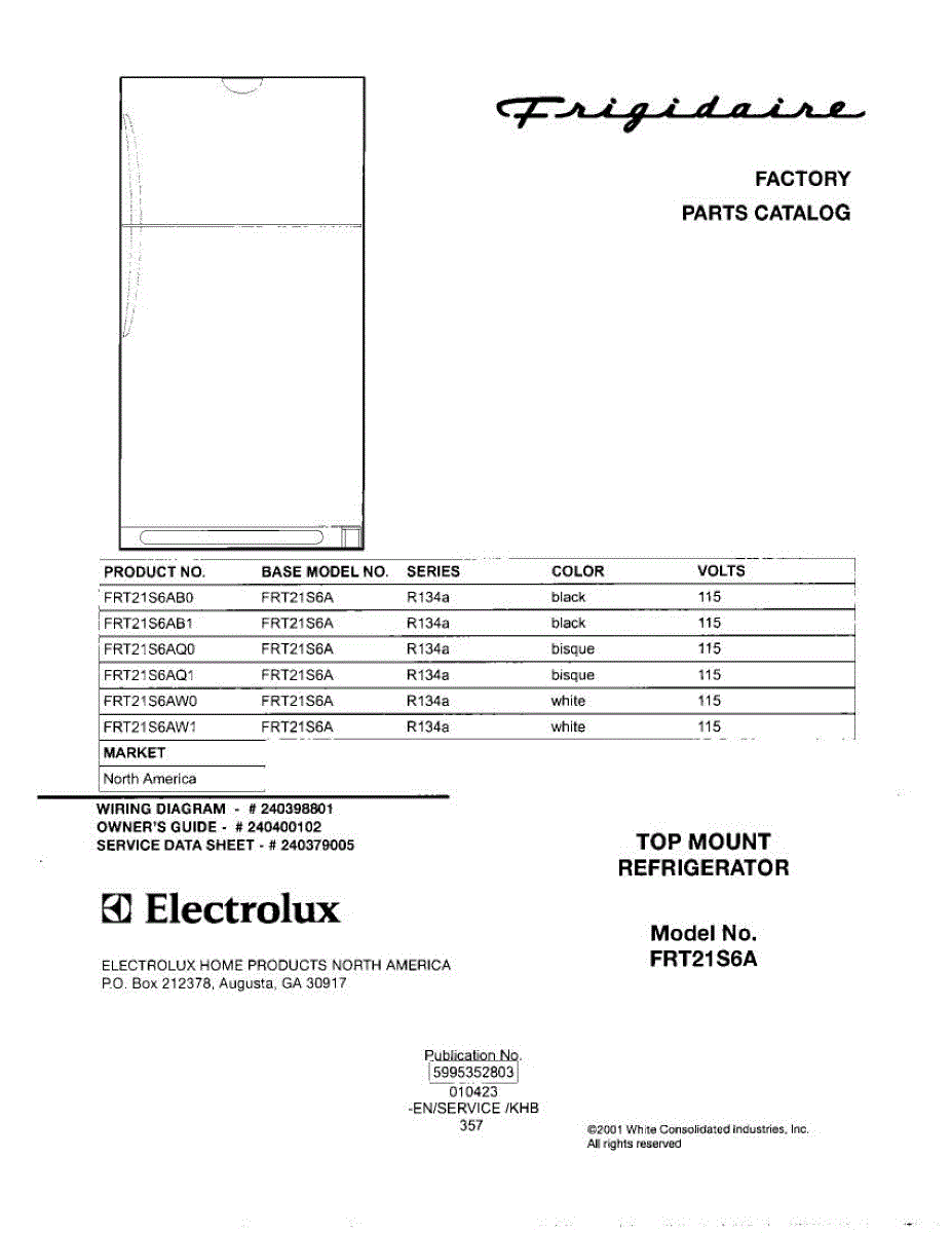 Parts for Frigidaire FRT21S6AB1: 01 - Cover Parts