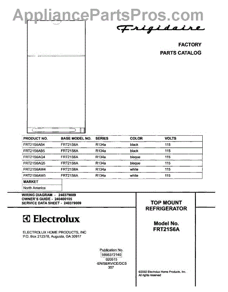 Parts for Frigidaire FRT21S6AB4: 01 - Cover Parts
