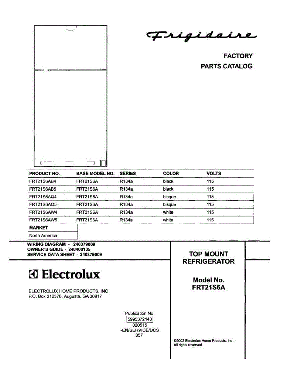 Parts for Frigidaire FRT21S6AQ5: 01 - Cover Parts