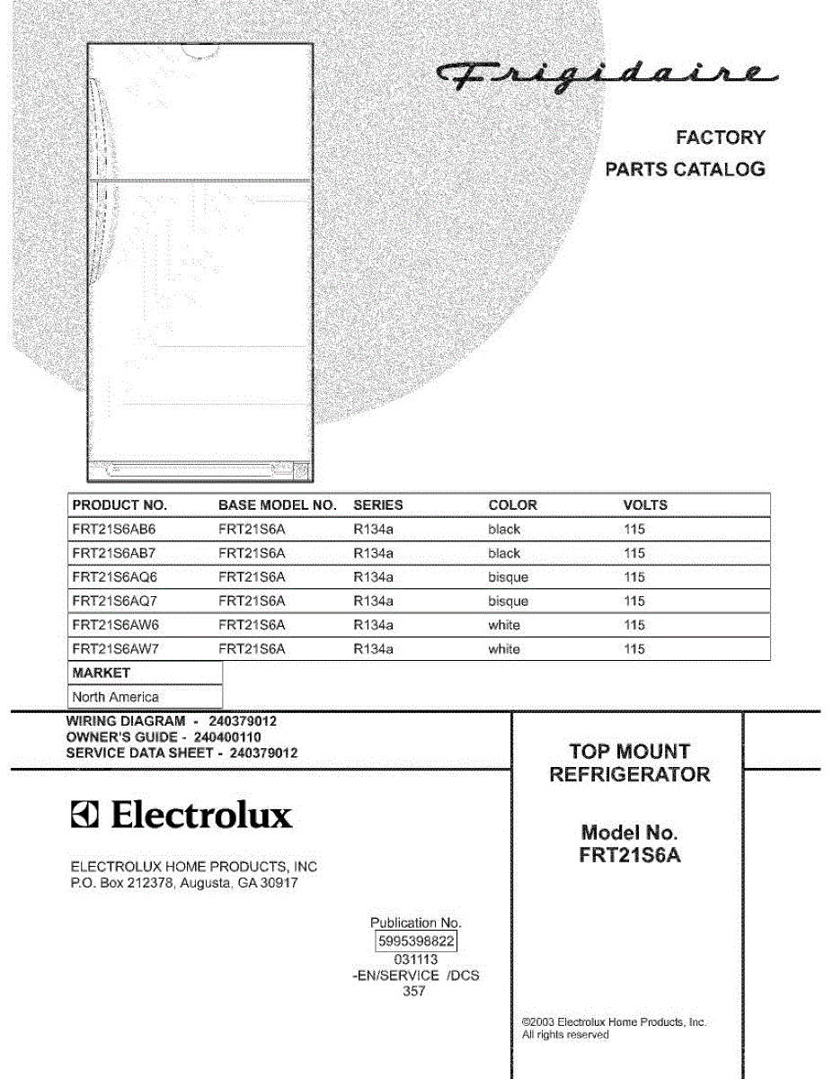 Parts for Frigidaire FRT21S6AW7: 01 - Cover Parts