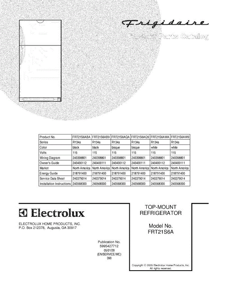 Parts for Frigidaire FRT21S6AW9: 01 - Cover Parts