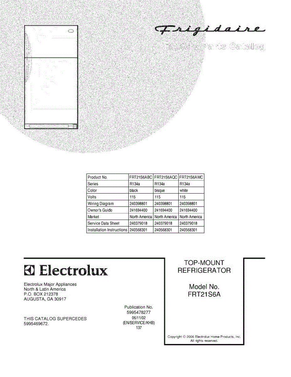 Parts for Frigidaire FRT21S6AWC: 01 - Cover Parts