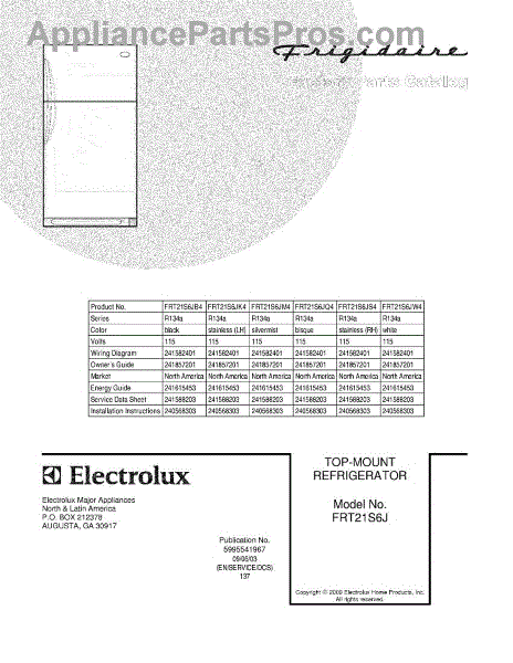 Parts for Frigidaire FRT21S6JS4: 01 - Cover Parts
