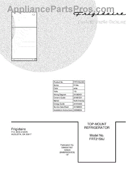Parts for Frigidaire FRT21S6JW5: 01 - Cover Parts