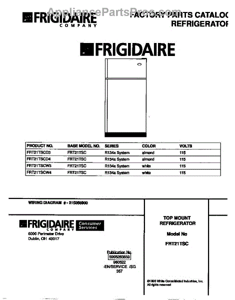 Parts for Frigidaire FRT21TSCD4: 01 - Cover Parts