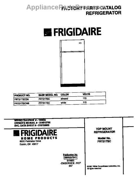 Parts for Frigidaire FRT21TSCW6: 01 - Cover Parts