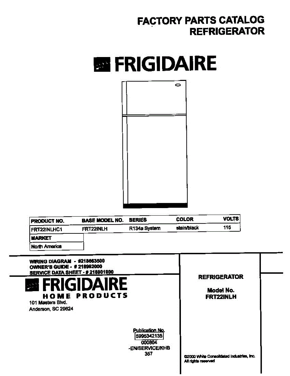 Parts for Frigidaire FRT22INLHC1: 01 - Cover Parts
