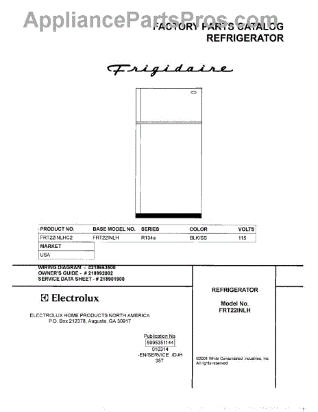 Parts for Frigidaire FRT22INLHC2: 01 - Cover Parts