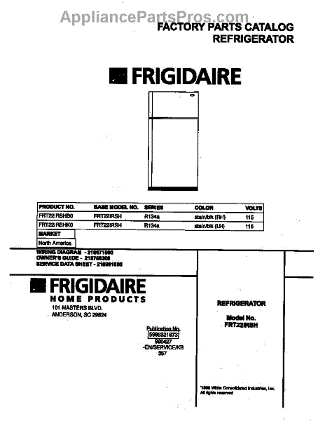 Parts for Frigidaire FRT22IRSHB0: 01 - Cover Parts