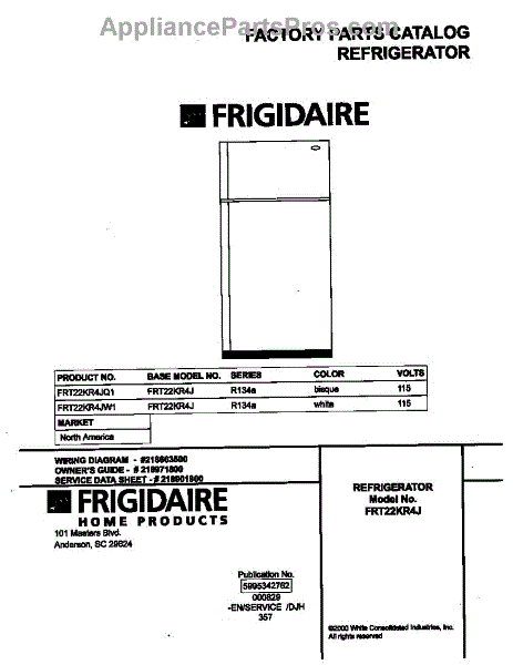 Parts for Frigidaire FRT22KR4JW1: 01 - Cover Parts