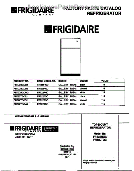Parts for Frigidaire FRT22RGCB2: 01 - Cover Parts