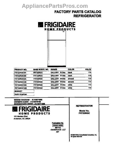 Parts for Frigidaire FRT22RGCDB: 01 - Cover Parts