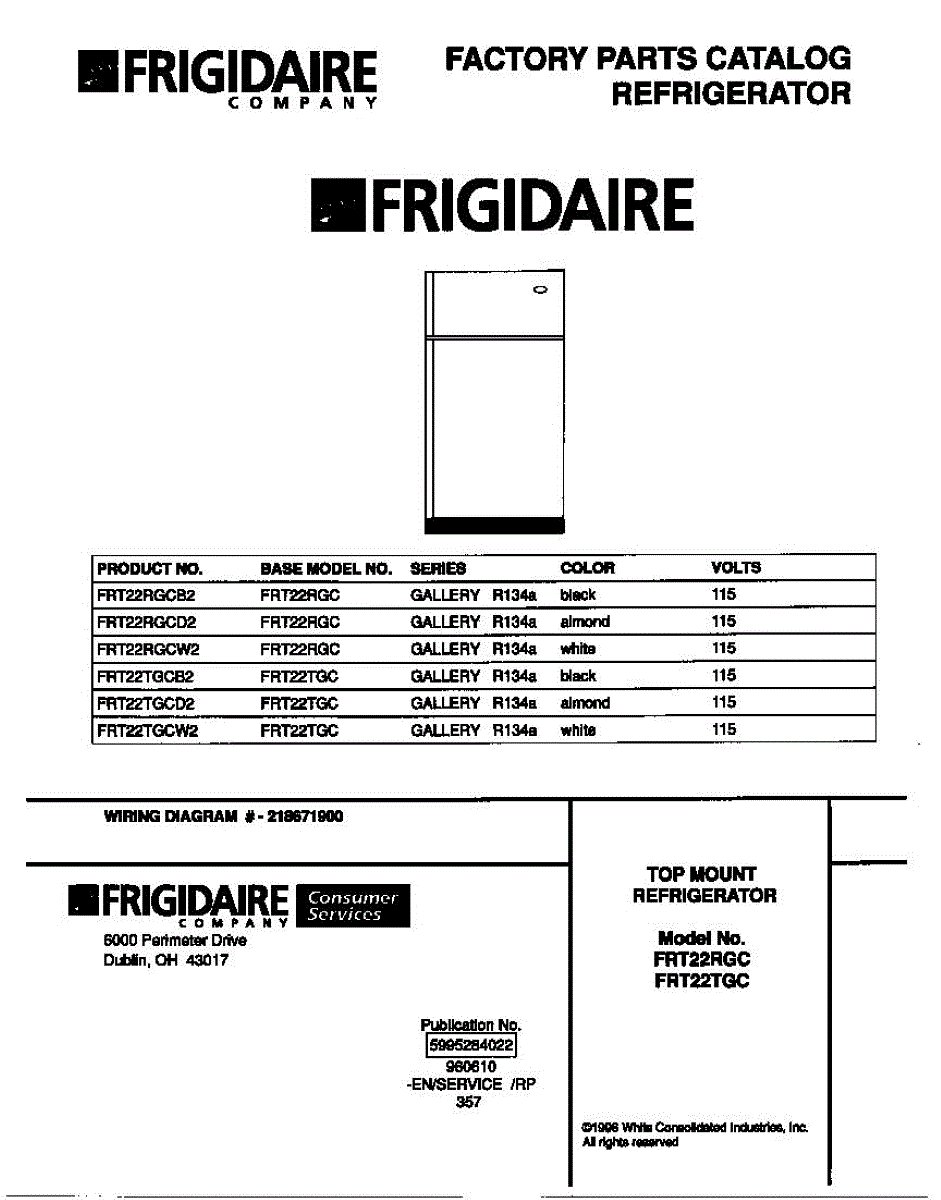 Parts for Frigidaire FRT22TGCW2: 01 - Cover Parts