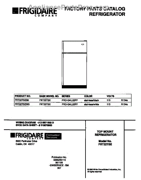 Parts for Frigidaire FRT22TSEB0: 01 - Cover Parts