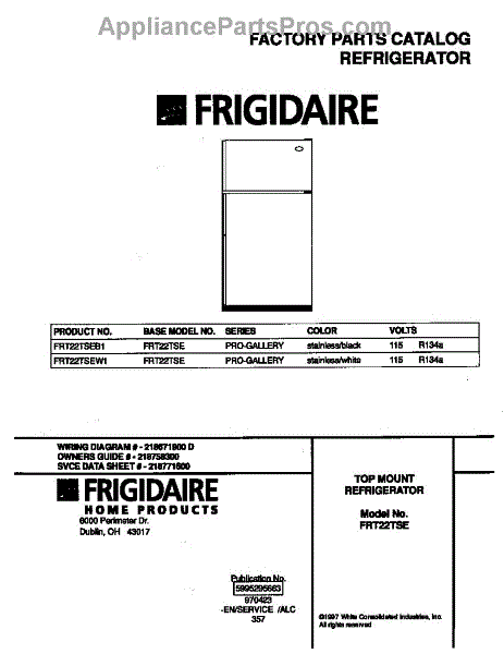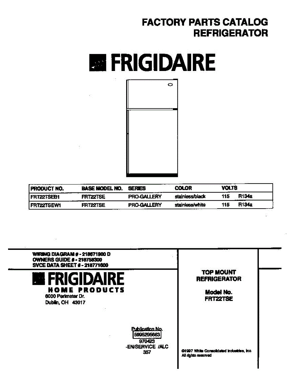 Parts for Frigidaire FRT22TSEW1: 01 - Cover Parts