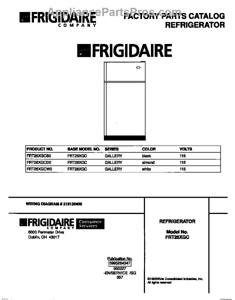 Parts for Frigidaire FRT26XGCW0: 01 - Cover Parts