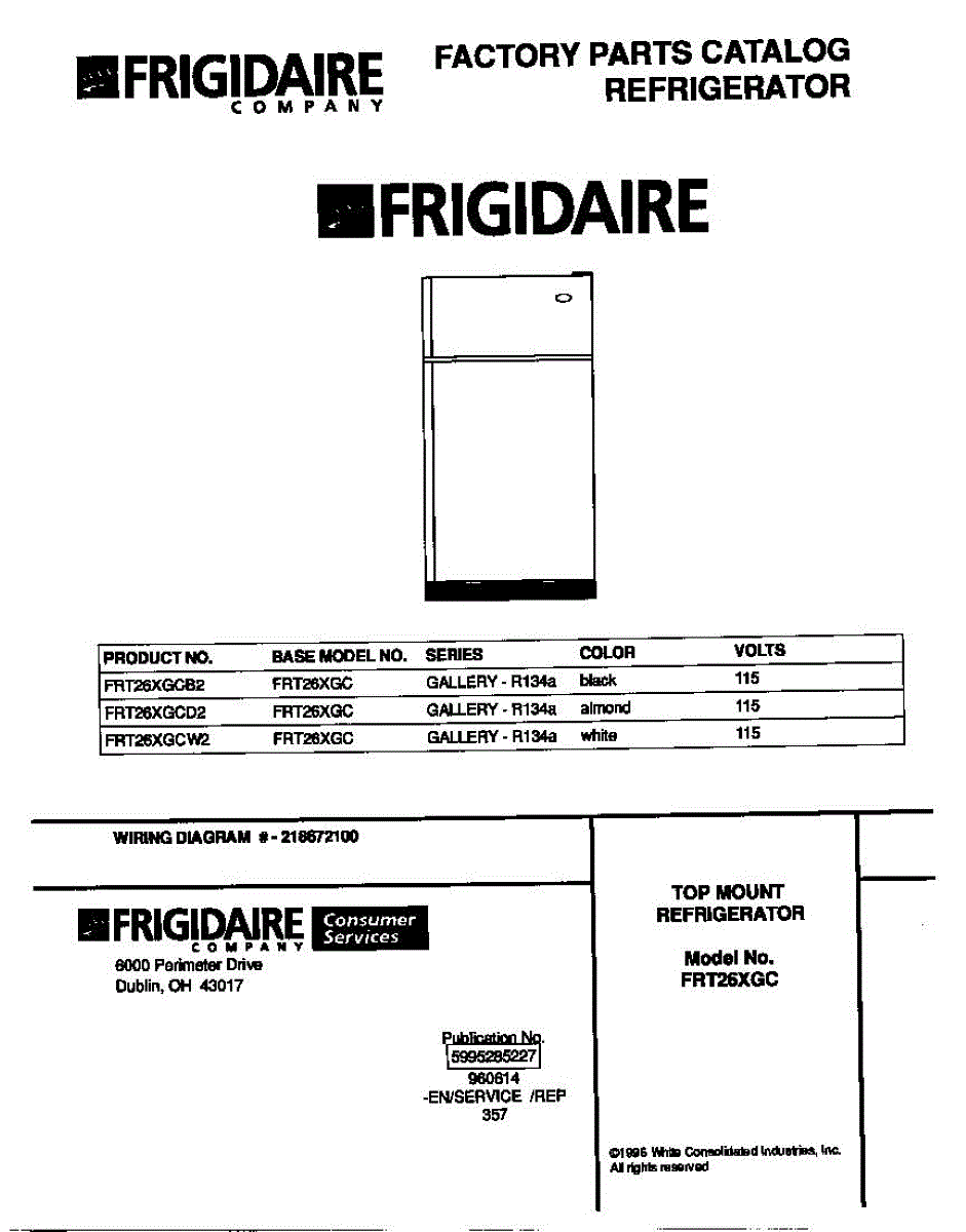Parts for Frigidaire FRT26XGCW2: 01 - Cover Parts
