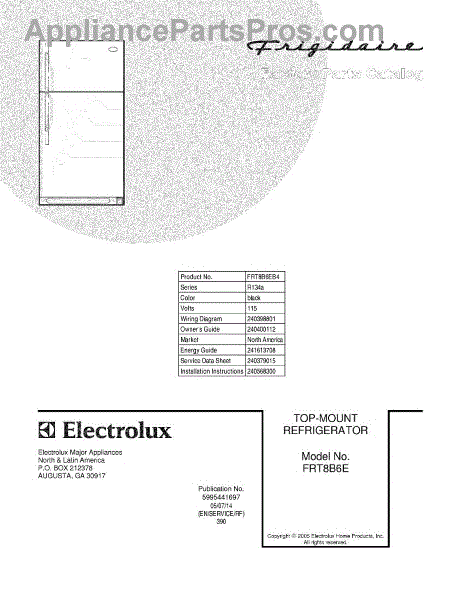 Parts for Frigidaire FRT8B6EB4: 01 - Cover Parts