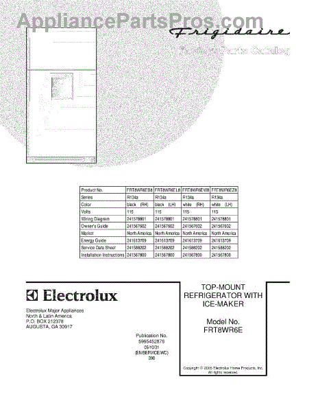 Parts for Frigidaire FRT8WR6EZ8: 01 - Cover Parts