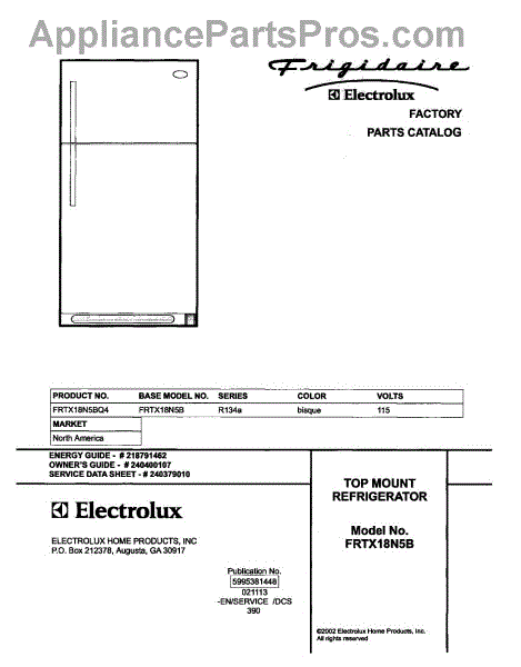 Parts for Frigidaire FRTX18N5BQ4: 01 - Cover Parts
