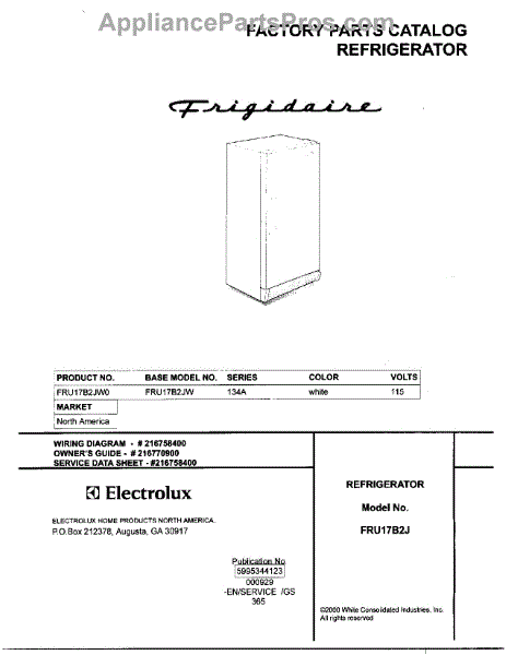Parts for Frigidaire FRU17B2JW0: 01 - Cover Parts