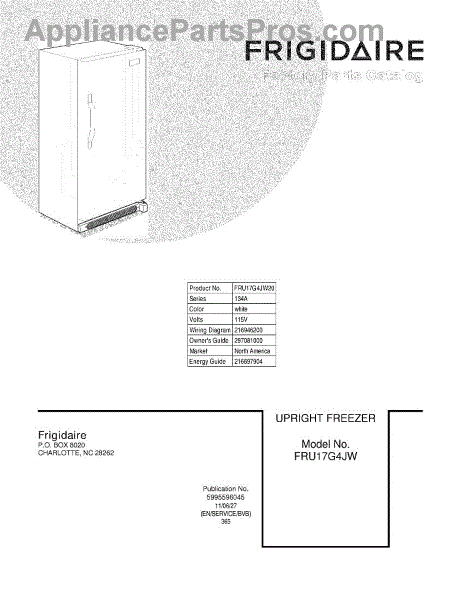Parts for Frigidaire FRU17G4JW20: 01 - Cover Parts