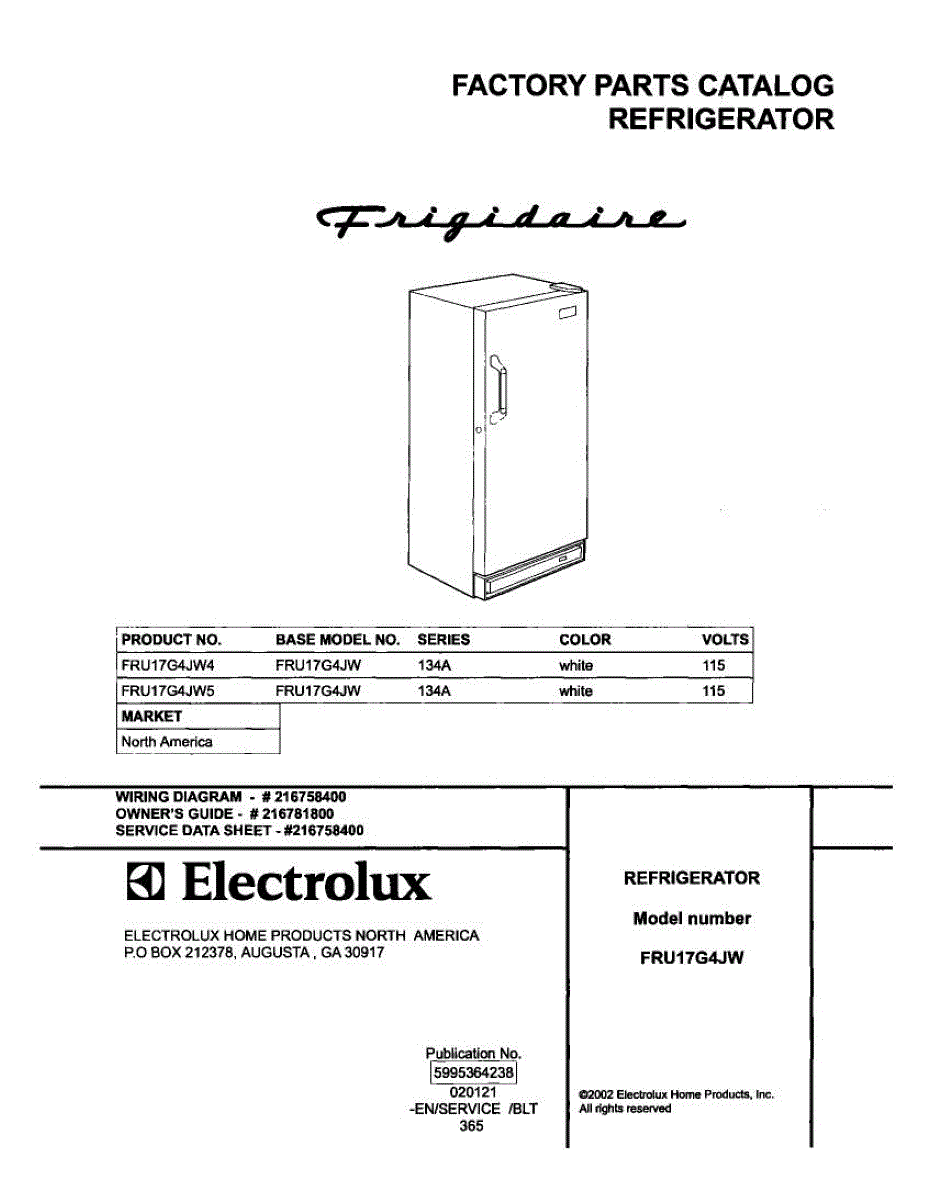 Parts for Frigidaire FRU17G4JW5: 01 - Cover Parts