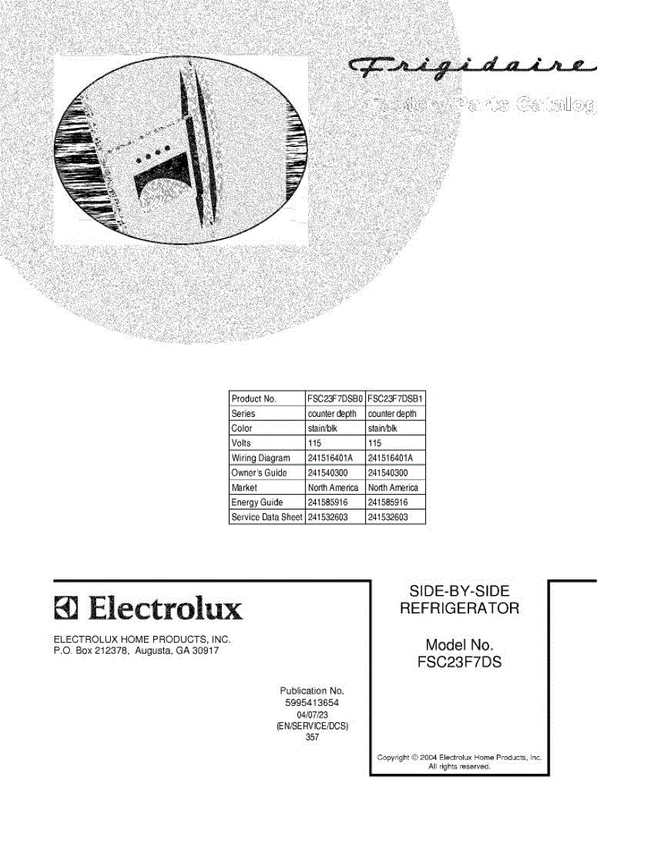 Parts for Frigidaire FSC23F7DSB1: 01 - Cover Parts
