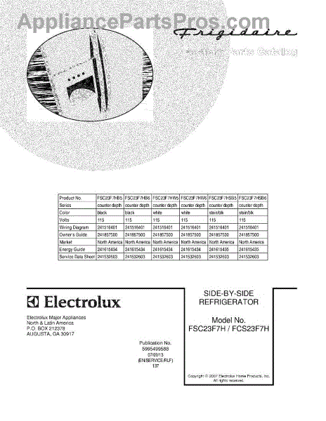Parts for Frigidaire FSC23F7HB6: 01 - Cover Parts