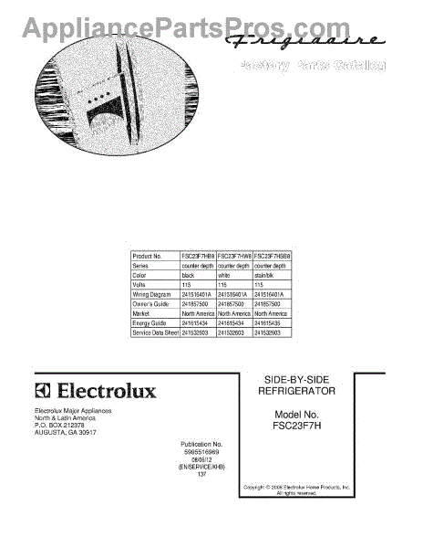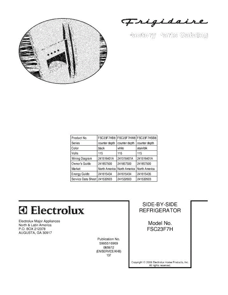 Parts for Frigidaire FSC23F7HB8: 01 - Cover Parts