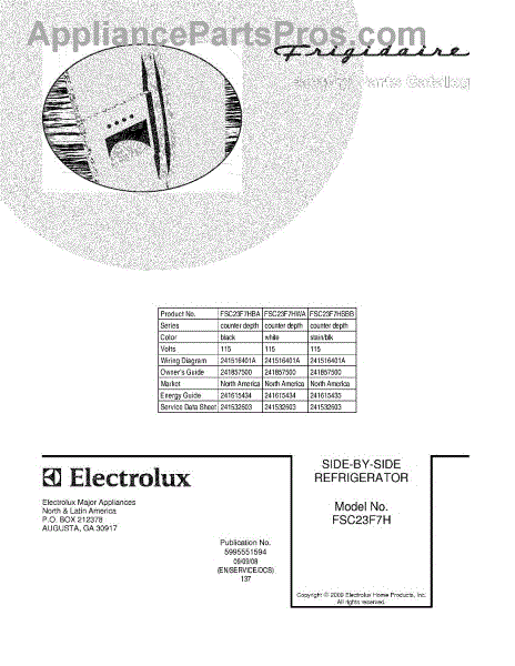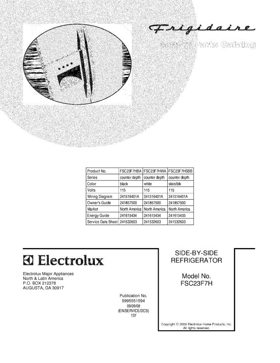 Parts for Frigidaire FSC23F7HWA: 01 - Cover Parts