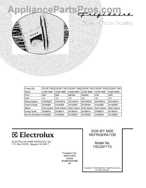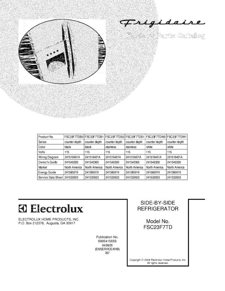 Parts for Frigidaire FSC23F7TDW1: 01 - Cover Parts