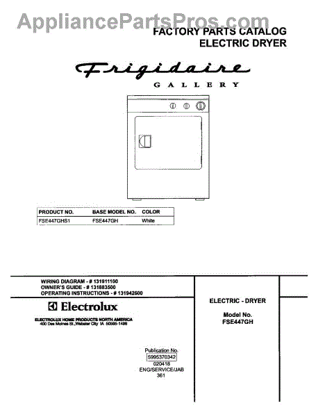 Parts for Frigidaire FSE447GHS1: 01 - Cover Parts