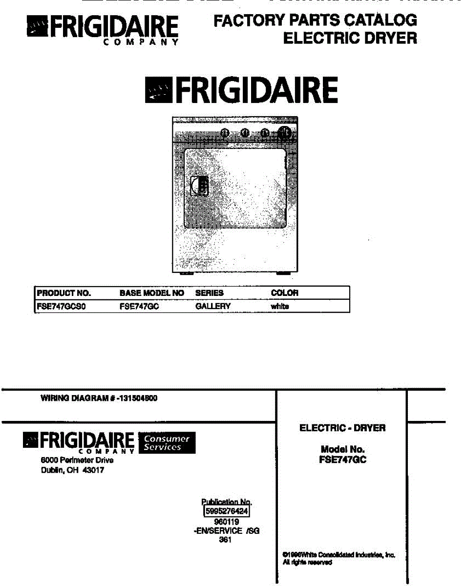 Parts for Frigidaire FSE747GCS0: 01 - Cover Parts