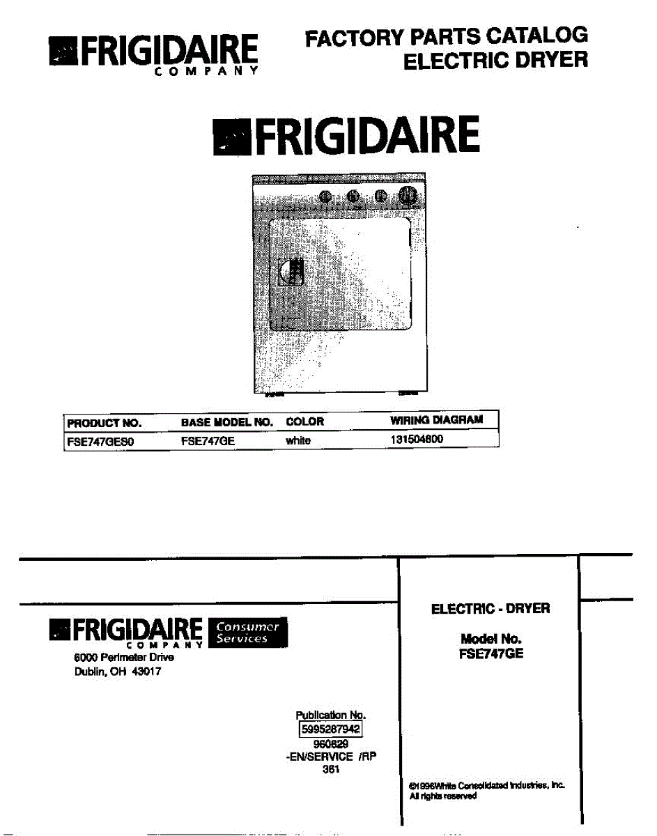 Parts for Frigidaire FSE747GES0: 01 - Cover Parts