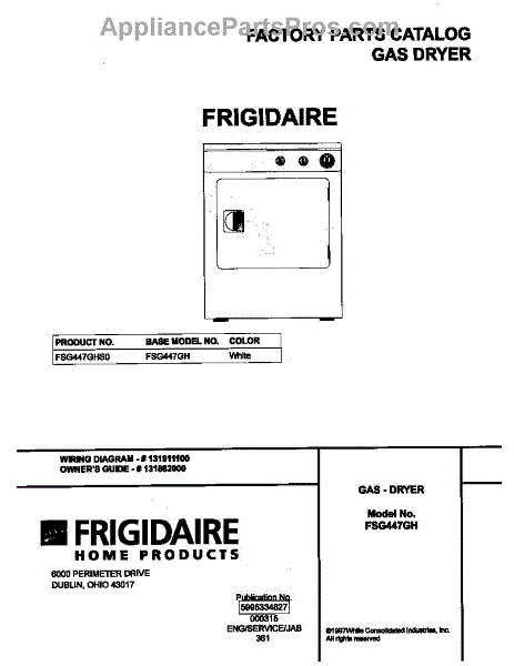 Parts for Frigidaire FSG447GHS0: 01 - Cover Parts