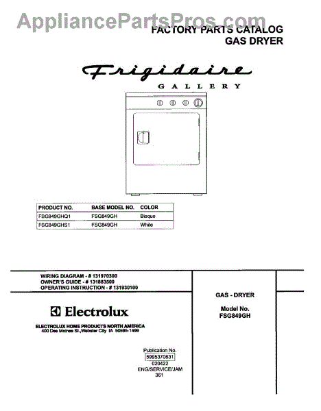 Parts for Frigidaire FSG849GHS1: 01 - Cover Parts