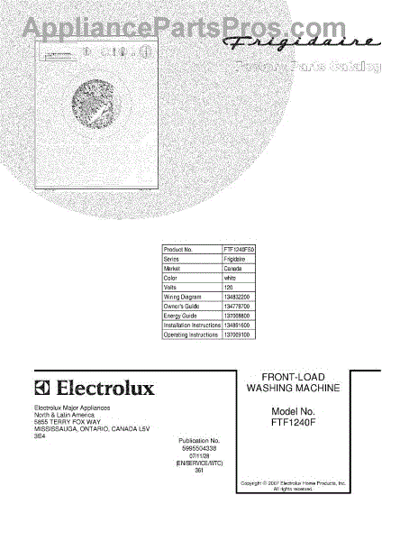 Parts for Frigidaire FTF1240FS0: 01 - Cover Parts