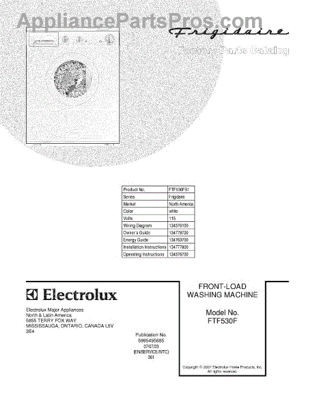 Parts for Frigidaire FTF530FS1: 01 - Cover Parts