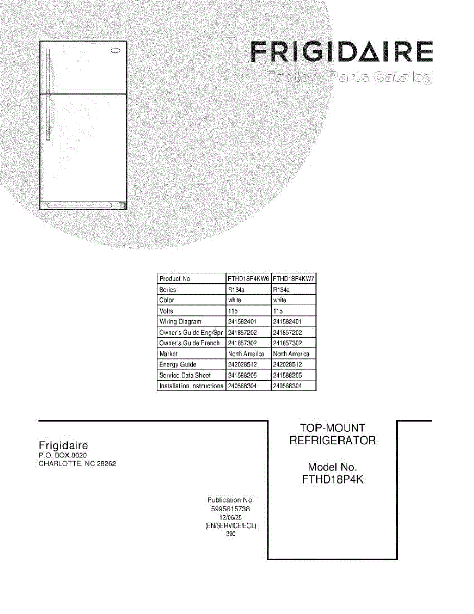 Parts for Frigidaire FTHD18P4KW6: 01 - Cover Parts