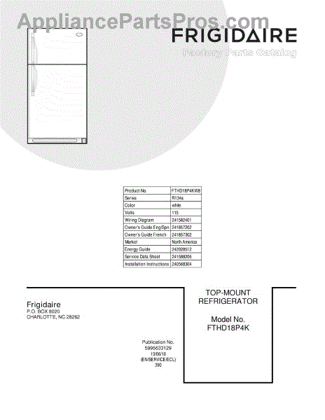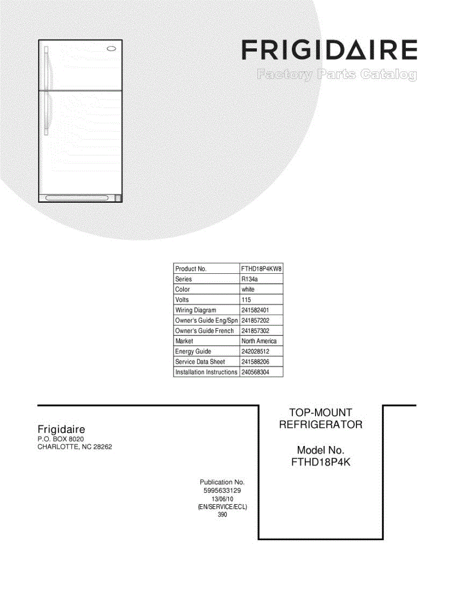 Parts for Frigidaire FTHD18P4KW8: 01 - Cover Parts
