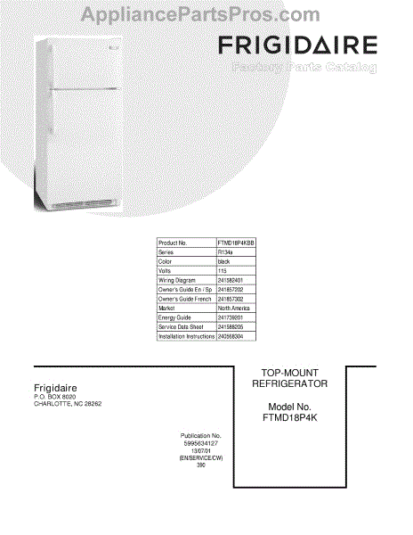 Parts for Frigidaire FTMD18P4KBB: 01 - Cover Parts