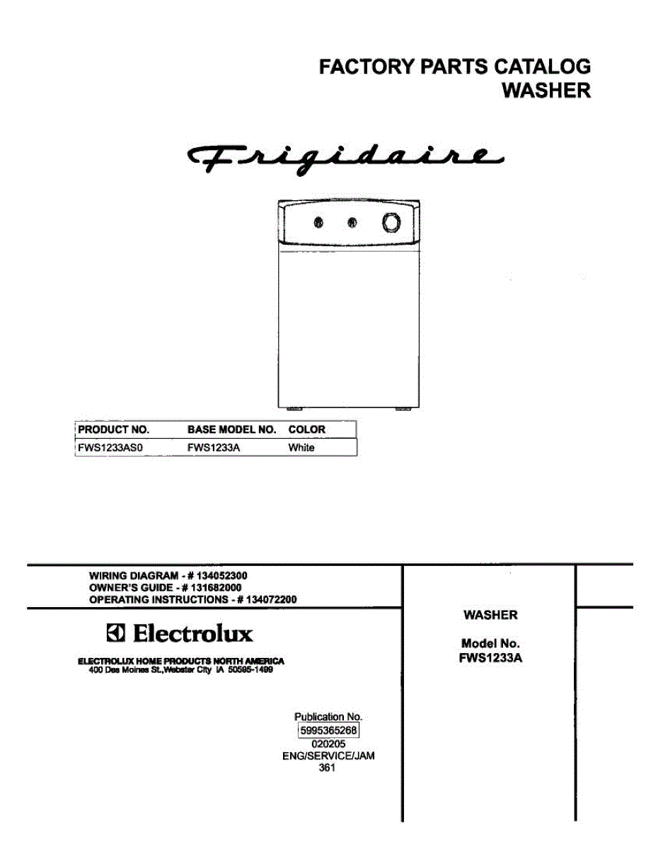 Parts for Frigidaire FWS1233AS0: 01 - Cover Parts