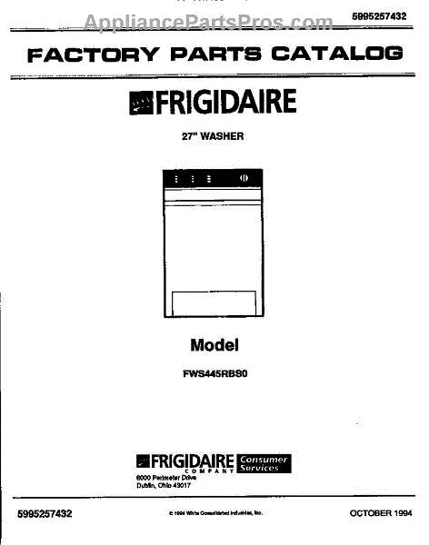 Parts for Frigidaire FWS445RBS0: 01 - Cover Parts