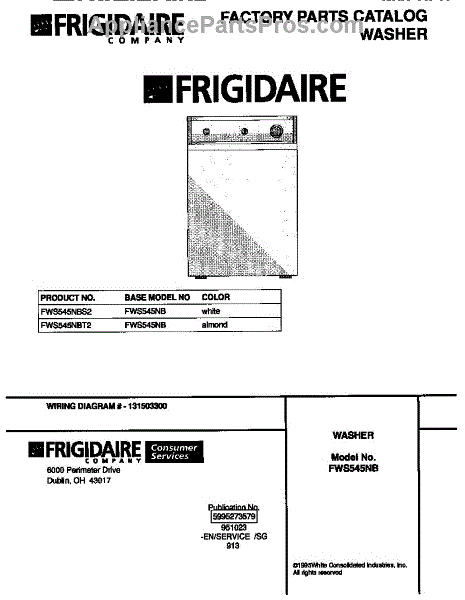 Parts for Frigidaire FWS545NBS2: 01 - Cover Parts