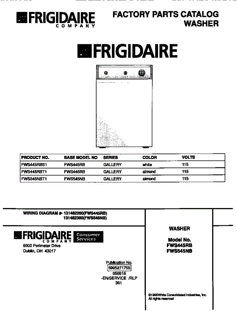 Parts for Frigidaire FWS545NBT1: 01 - Cover Parts