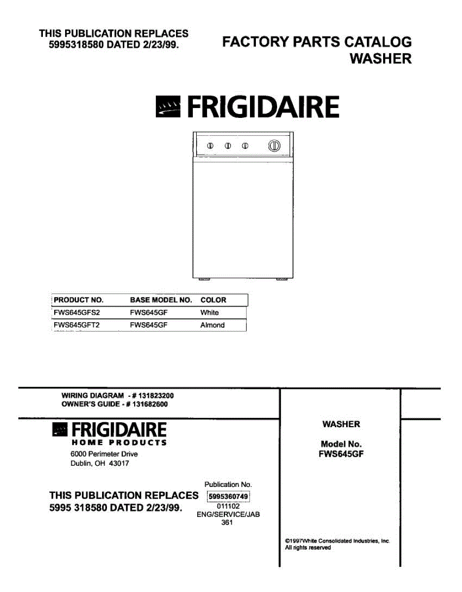 Parts for Frigidaire FWS645GFS2: 01 - Cover Parts